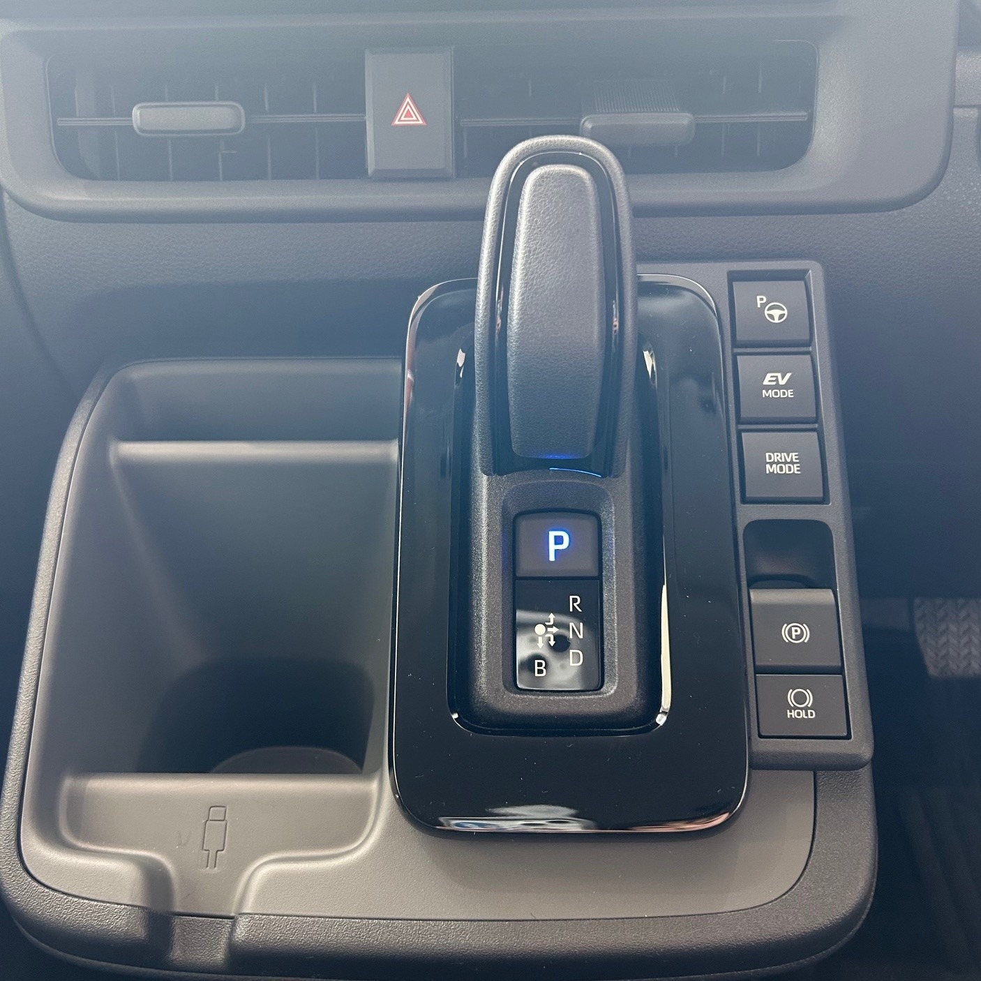 シフトレバーを【P】ポジションに入れると自動で作動し、