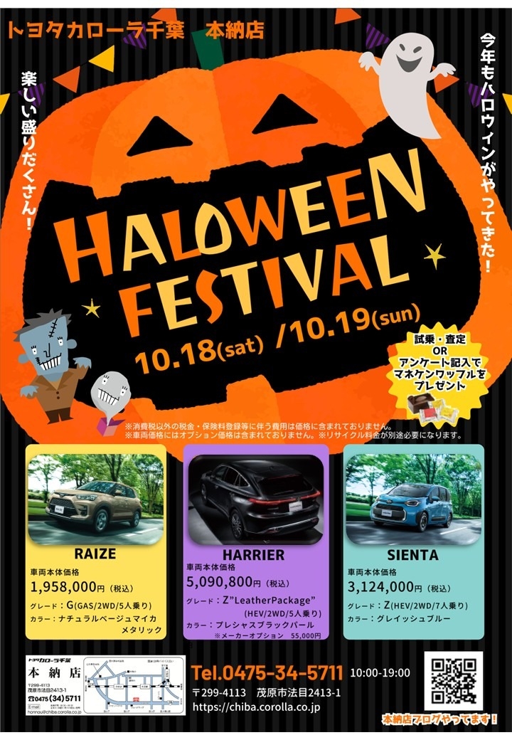 ということで本納店で 10月18日(土),19日(日) でイベントを開催します♪