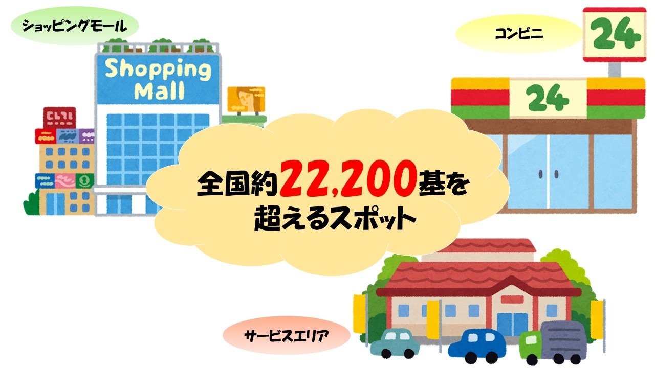 全国22,200基 千葉県EVスポット1,182拠点 ガソリンスタンド役980か所