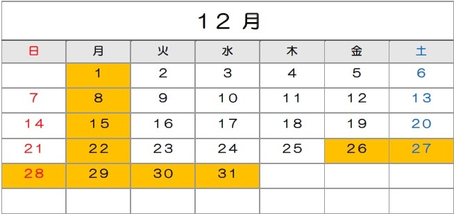 ※26日(金)~来年1月3日(土)は長期休業となります。