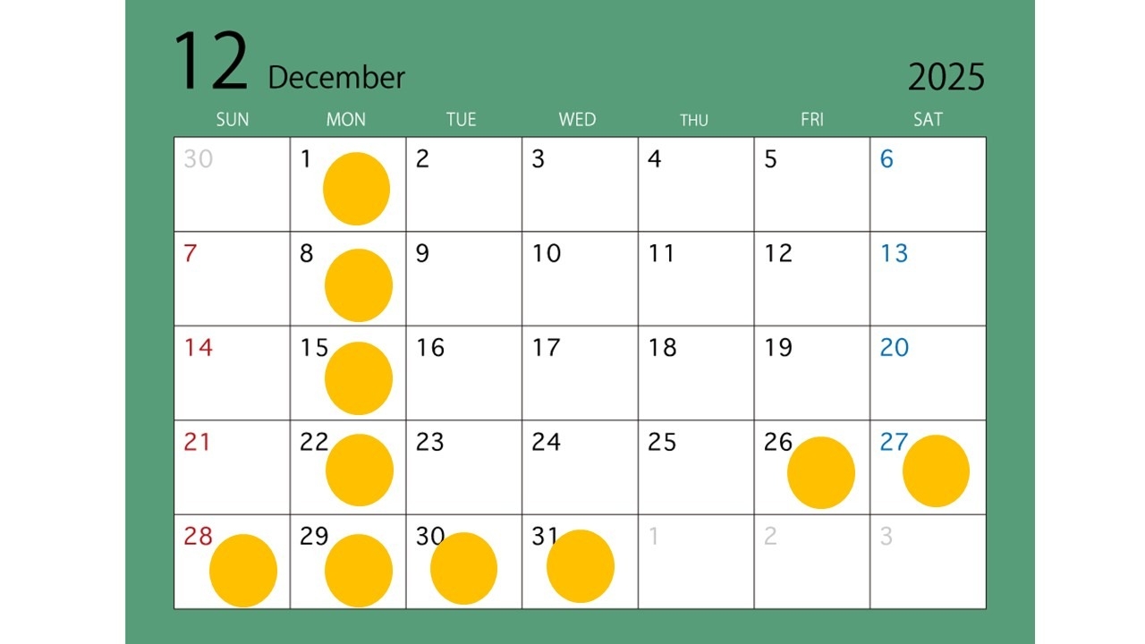 ◎12月の営業日のお知らせ◎