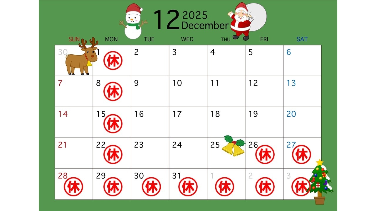 🎅 12月の定休日のご案内です 🦌