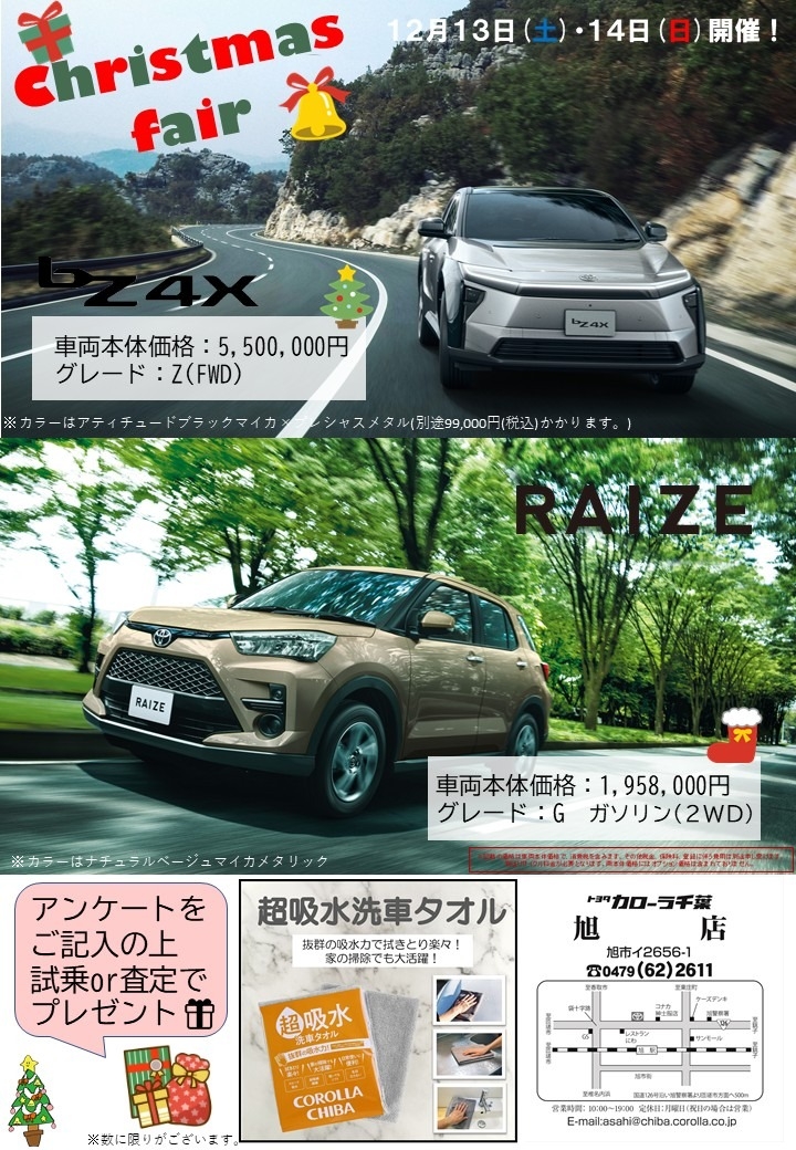 アンケートをご記入の上、試乗or査定で超吸水タオルをプレゼント!
