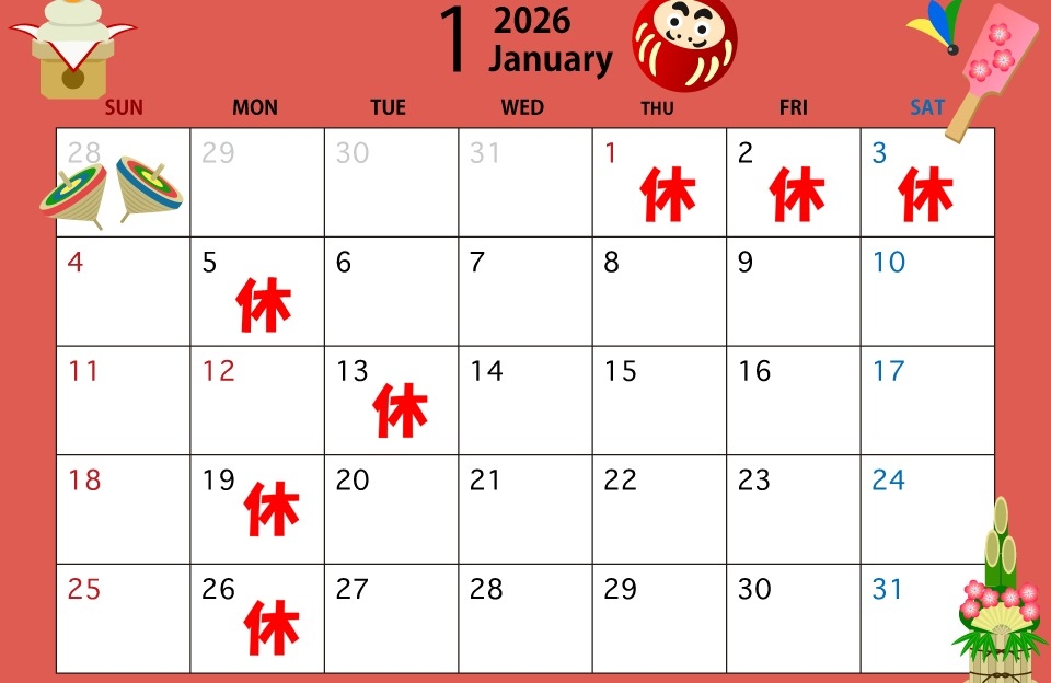 年末年始の休業日のお知らせです。