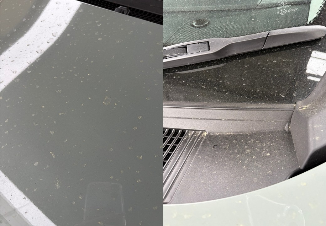 毎日飛び交っている花粉が車に付着すると黄色い粒々とした