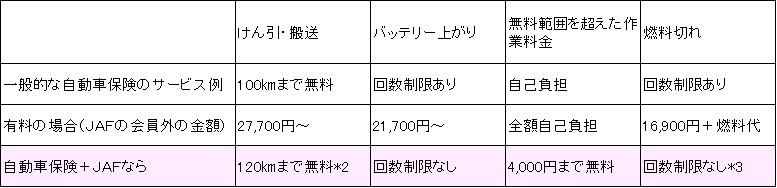でも、JAFと自動車保険のロードサービスって