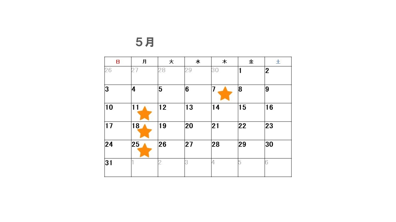 ★のところが2026年5月の店休日となります🎶