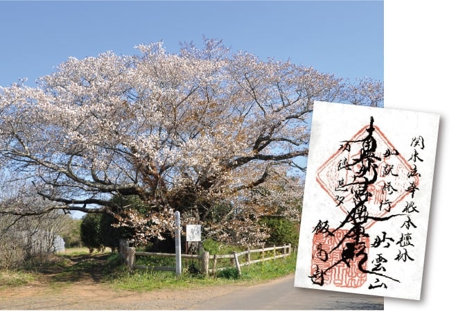 多くの学僧が学び飯高檀林と呼ばれた飯高寺。寺から少し離れて根を張る黄門桜は、元禄11(1698)年に水戸光圀公が飯高寺へ訪れた記念に植えたうち唯一現存する桜。ソメイヨシノより1週間遅く開花する。